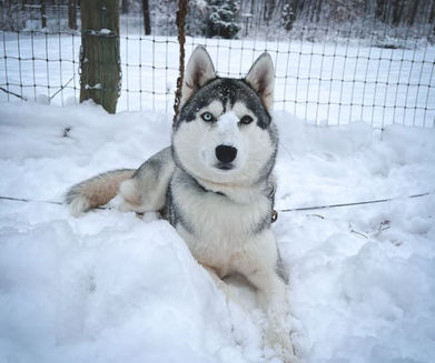 Freya was our first well-bred Siberian and our first AKC Champion. Her patience and eager-to-please attitude made her an ideal dog to learn the show ring with. In harness, Freya shows natural trail focus and a strong work ethic.
